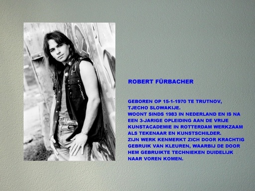 Robert Fürbacher was born in the mountains of the Czech Republic in a lovely town called Trutnov. At the age of 13 he moved to live under the sealevel in The Netherlands. At the age of 18 he started learning as an artist on freeacademie in Rotterdam. Since then he did more than 50 exp.